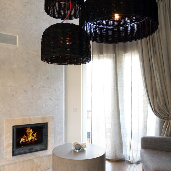 Kā Saule un Mēness debesīs, tā arī gaismas ķermeņi mājoklī dominē gan dienas gaišajā, gan tumšajā laikā. Oriģinālās, “Jonikas” veidotās pītās lampas atdzīvina vietu, kas savādāk būtu vienkārši neizmantojama telpa pie griestiem, un iesaista to kopējā elementu saspēlē. Arī aizkarus mājā pēc individuāla dizaina ir veidojusi “Jonika”.