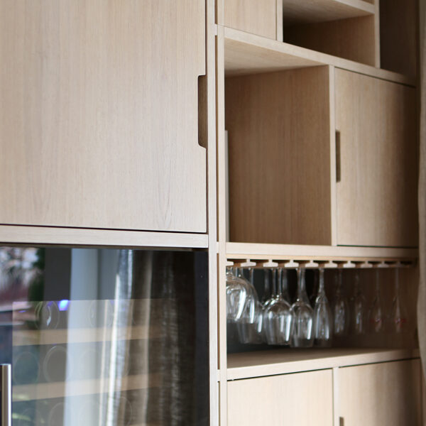 Nelielā, tikai 90 m2 lielā – vai mazā – vienstāvu privātmāja, kas ar jau gatavu apdari iegādāta 2001. gadā, ar projektēšanas biroja “Jonika” gādību ir sākusi dzīvot savu otro dzīvi. Lai maksimāli efektīvi izmantotu ikvienu sprīdi katrā telpā, gan no jauna padomāts par plānojumu kopumā un mēbeļu izvietojumu ikvienā istabā, gan izmantoti sevi jau pierādījuši praktiski “triki”. Tā ēdamzonā, kur līdz šim bija vienkārši siena, no grīdas līdz griestiem uz dažu desmitu centimetru platuma rēķina ir izveidota ietilpīga plauktu un skapju sistēma ar iebūvētu vīna skapi, no kuras vajadzības gadījumā var izbīdīt darba virsmu ar šampanieša spaini un dēli uzkodu gatavošanai.