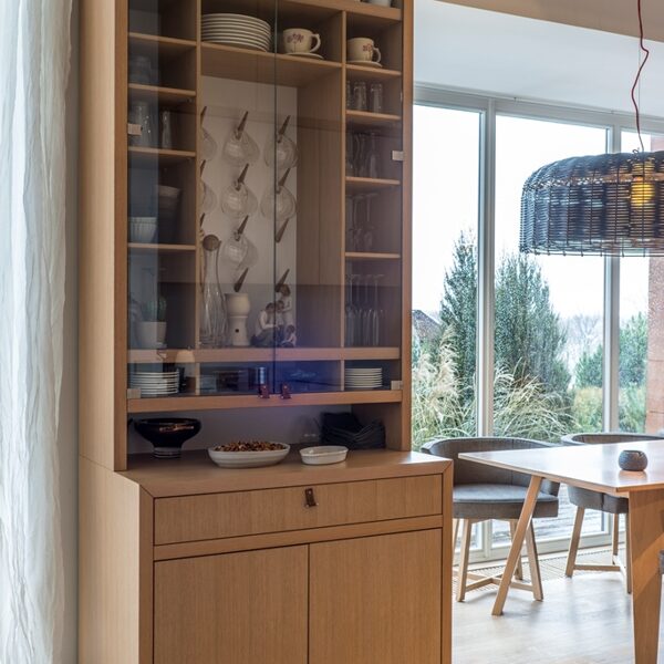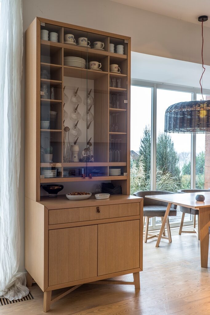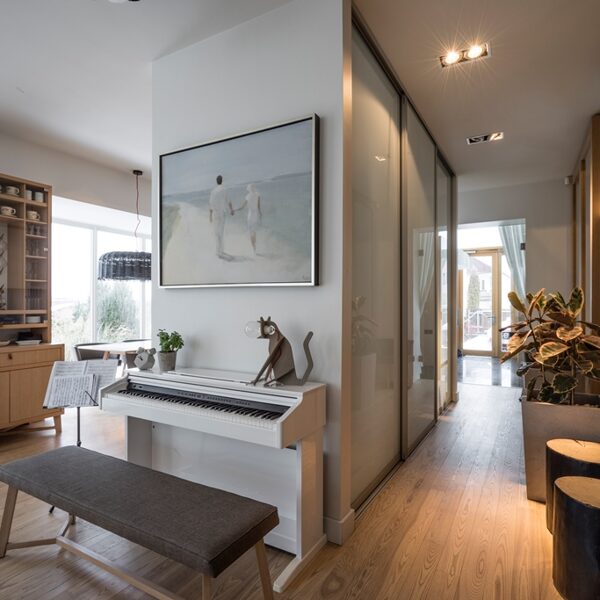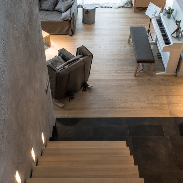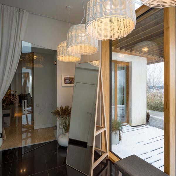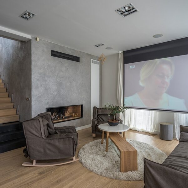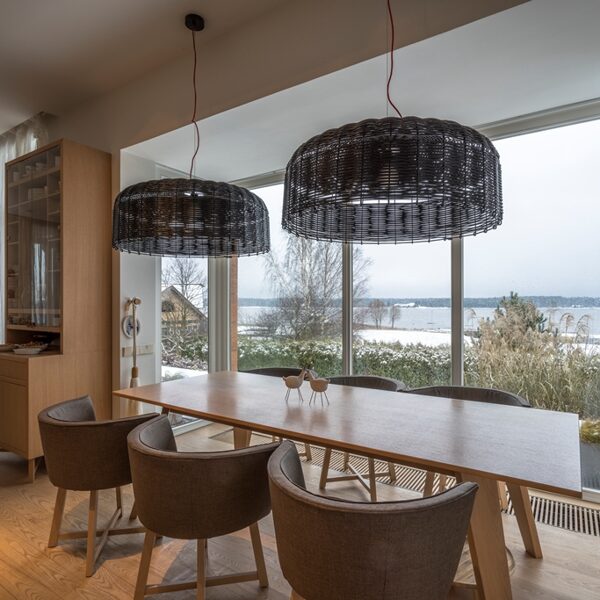 Radījām interjeru, kur arhitektūra, daba un gaisma saplūst vienotā telpiskā pieredzē. Privātmājas pirmais stāvs veidots ar atvērtu plānojumu un maksimālu vizuālo saikni ar upes ainavu, ļaujot dabai kļūt par neatņemamu interjera daļu. Visas mēbeles, gaismas ķermeņi un tekstila risinājumi ir individuāli projektēti un izgatavoti tieši šai telpai, nodrošinot gan estētisku tīrību, gan ikdienas funkcionalitāti. Rezultāts ir mierīgs, laikmetīgs interjers ar paliekošu vērtību — telpa, kas elpo, mainās līdz ar gaismu un atspoguļo mājas iemītnieku dzīvesveidu.